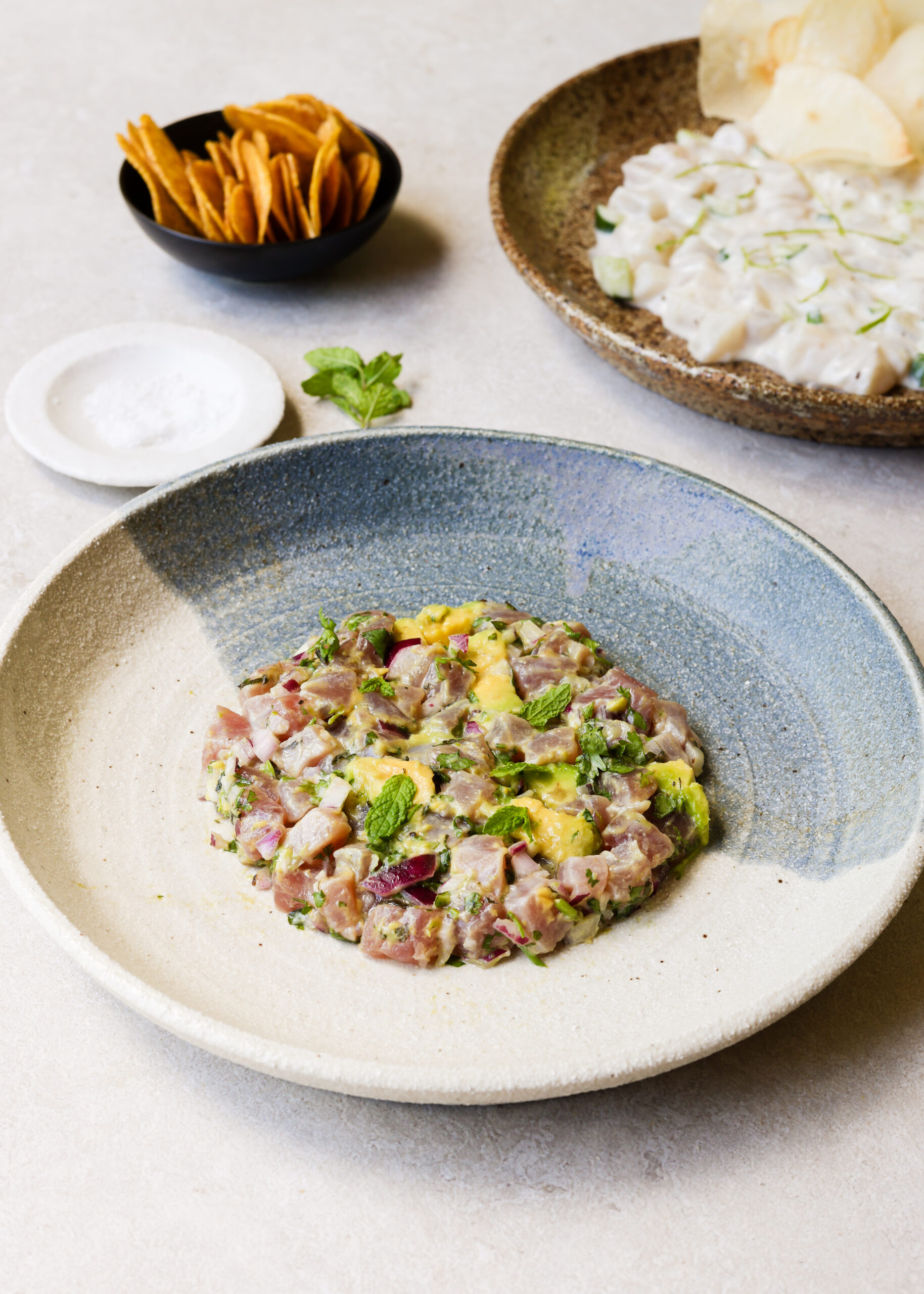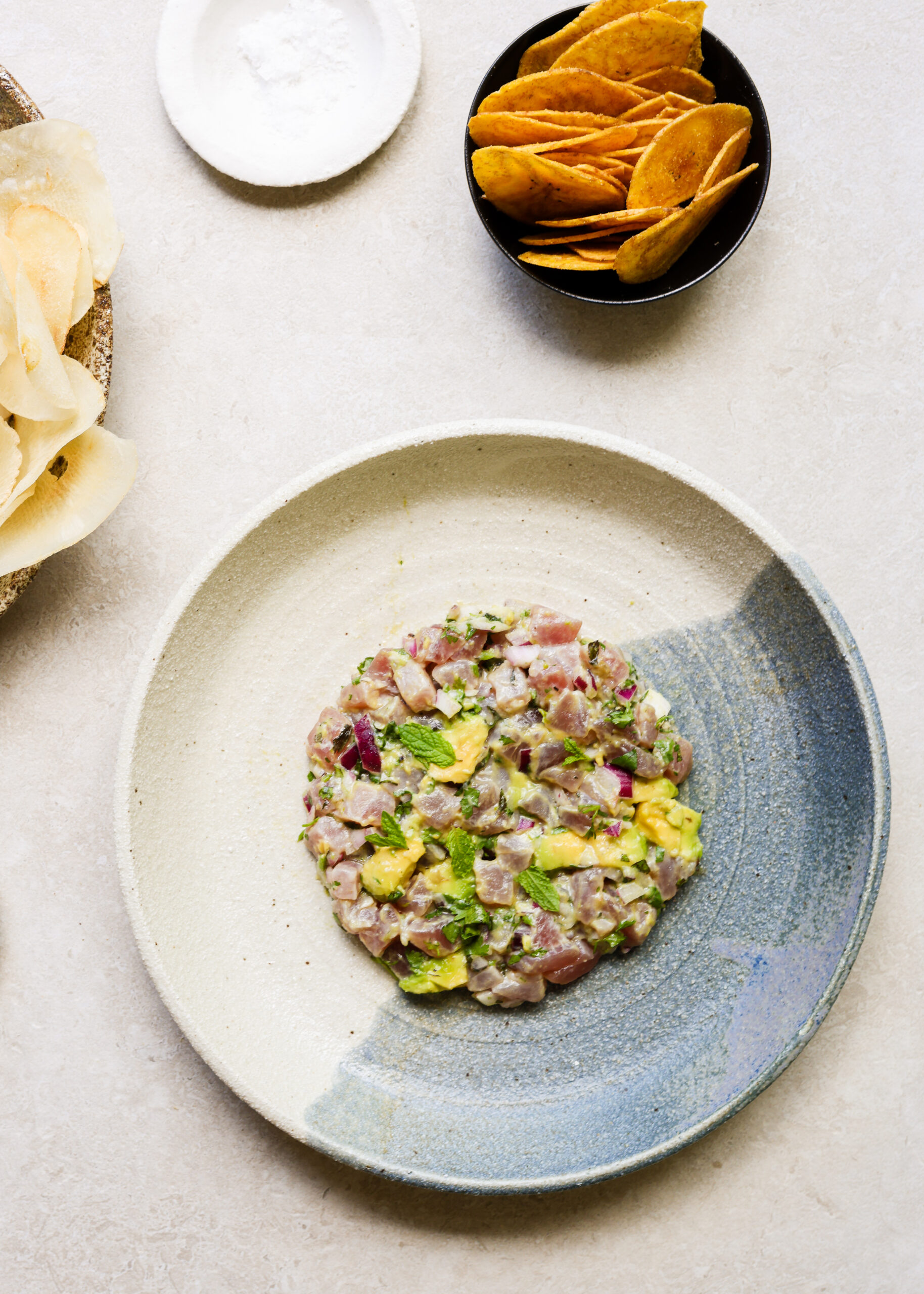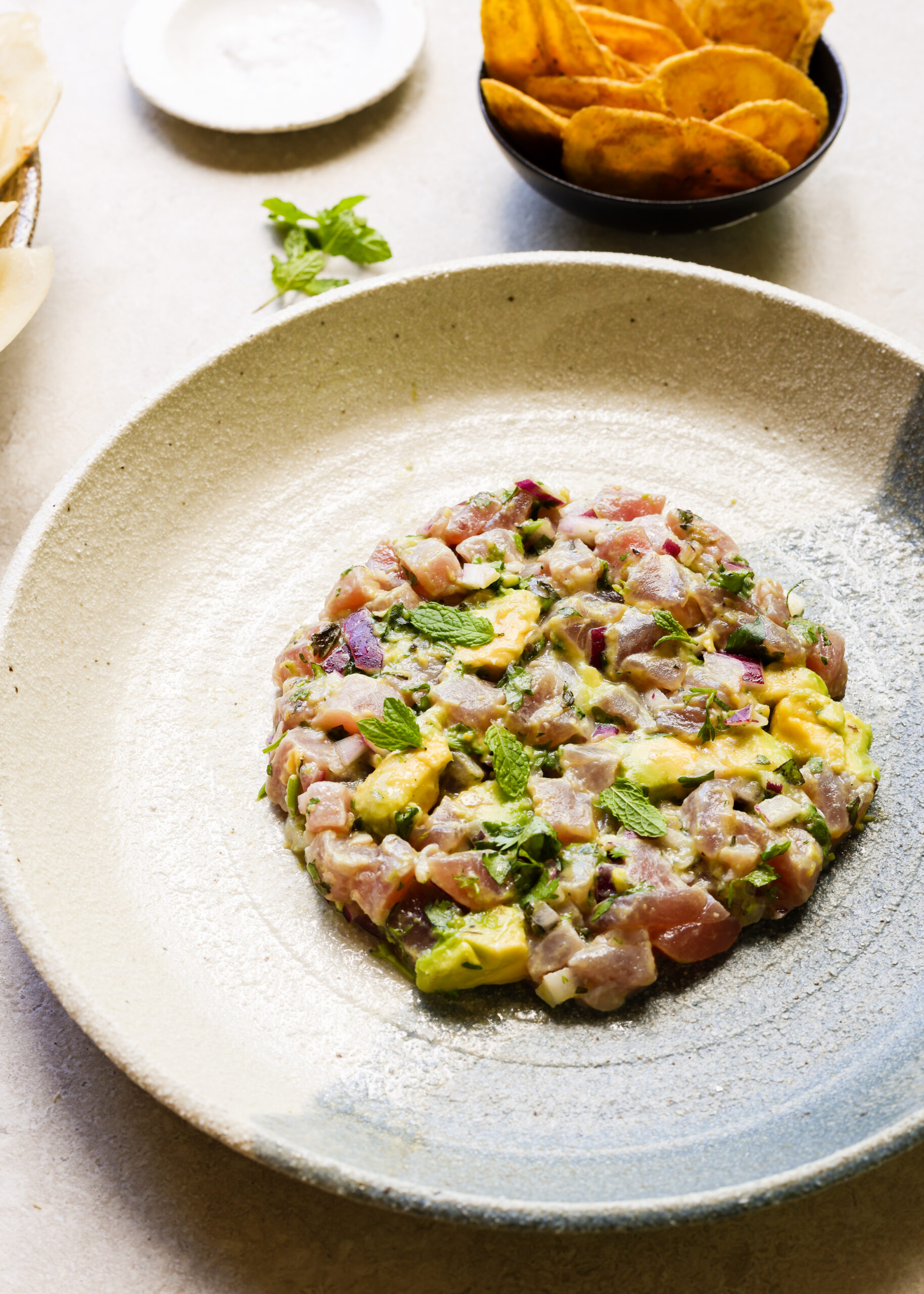 Tuna Green Ceviche with Chilli Turbo Plantain Chips